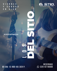 En abril de 1999 nace en Usaquén, la zona bohemia de Bogotá, la que hace 26 AÑOS después sigue siendo una marca sólida, con su esencia intacta que sigue despertando emociones y buenos recuerdos de nuestros fieles seguidores, clientes y amigos. El estar en la caen el corazón de tanta gente que nos lo reclama recurrentemente nos llevó a tomar la decisión de hacerlo nuevamente y como hace 25 AÑOS empezaremos con nuestra guitarra y nuestra voz pero sobre todo con nuestra pasión por la buena música, la rumba y los buenos momentos junto a nuestros viejos y nuevos amigos. Después de tanto camino recorrido volvemos desde nuestras raices para vivir otros 25 AÑOS con más experiencia, con más destinos, con más “Sitios”y seguramente con muchos más momentos mágicos llenos de la mejor música.